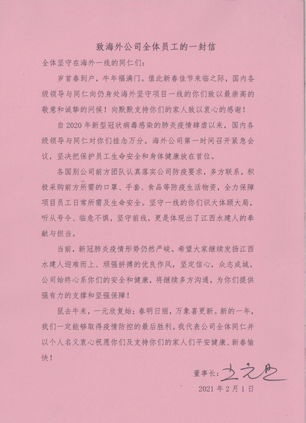 Ä¿½ñ£¬Ð¹ڷÎÑ×ÒßÇéÐÎÊÆÈÔÈ»ÑϾþ¡£Ï£Íû¸÷È˼ÌÐø·¢»Ó½­Î÷Ë®½¨ÈËÓ­ÄѶøÉÏ¡¢Íçǿƴ²«µÄÓÅÁ¼×÷·ç£¬¼á¶¨ÐÅÐÄ£¬ÖÚÖ¾³É³Ç¡£¹«Ë¾Ê¼ÖÕÐÄϵÄãÃǵÄÄþ¾²ºÍ½¡¿µ£¬½«¼ÌÐø¶à·½Ïàͬ£¬ÎªÄãÃÇÌṩǿÓÐÁ¦µÄÖ§³ÅºÍ¼áÇ¿°ü¹Ü£¡