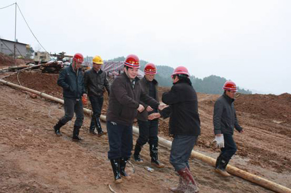 董事长、总经理王元旦一行首先来到基坑浇筑、混凝土搅拌站等施工现场进行观察,与施工人员一一握手,并听取了春节期间领导员工奋战在施工一线的公司副总经理聂玉和的生产情况汇报。董事长、总经理王元旦详细询问了搅拌站的生产能力能否满足施工要求,工程的进展情况及后期施工中的各项步伐,对项目部全体员工放弃节假日抢工期、保质量、抓进度的贡献精神给充分肯定和高度评价,他勉励各人包管质量宁静的前提下,抓紧时间完成大坝防渗面板的施工、再苦再累也要咬紧牙关挺已往,并要求施工项目部合理安排好各人春节期间的事情和生活。