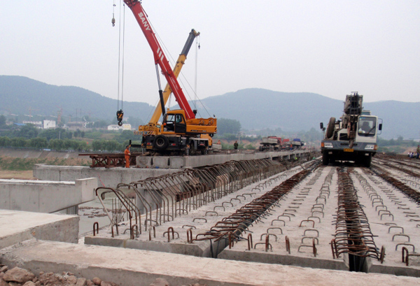 我公司2010年承建的大型市政灾后重建工程——四川省盐亭县梓江河桥闸工程,由两座长270M,宽11.5M的桥梁夹一座大型水闸组成。水闸全长202M,13孔×12M宽,接纳6M×12M大型平板闸门,水闸50年一遇洪水下泄流量为7260M3/S,属于大(I)型水闸项目工程。盐亭县梓江河桥闸工程现已按条约工期完工,正待验收,它的建成将极大地提升盐亭县新城区“城在水中,水边有城” 的新景象,成为盐亭县都会建设一道靓丽的景物线。