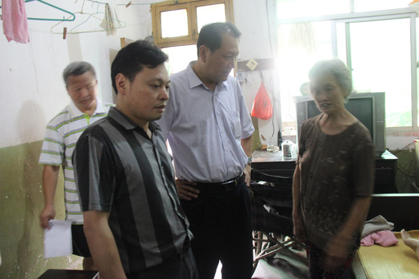 “七一”前夕,江西省水利厅直属机关党委专职副书记、宣传随处长隋晓明,副处长占任生一行于6月26日下午到我司职工生活基地看望慰问老党员和困难党员。隋副书记一行来到退休困难党员彭南山、江海泉等人的家里,带来厅党委的体贴和慰问,并为他们送上慰问金。隋副书记详细询问了公司退休困难党员的生活情况,嘱咐他们要珍重身体,安度晚年,并体现党没有忘记他们,水利厅和水建公司领导也时刻体贴着老党员。 公司党委委员、总经济师孙八根及相关部分人员陪同慰问。
