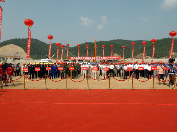 8月29日上午,我省目前投资规模最大的水利枢纽工程--峡BG大游利枢纽工程举行大江截流仪式。凭据江西省峡BG大游利枢纽工程建设总指挥部的安排,我公司总经济师孙八根、副总经理胡鸿煌率领60多人的步队加入了峡BG大游利枢纽工程大江截流仪式。