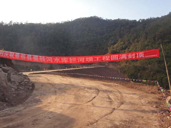 我公司2010年5月中标承建的云南省普洱市景谷县曼转河水库拦河坝工程历时950余日历天,于2013年1月15日圆满完成大坝封顶,标记着该项目的主体工程基本完成。 曼转河水库拦河坝工程为粘土心墙风化料坝,最大坝高75.5米,2010年5月31日正式开工建设,总投资7859万元。