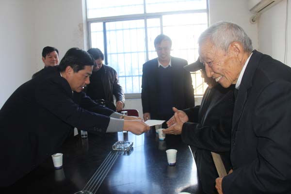 孙厅长为离休干部送上慰问金