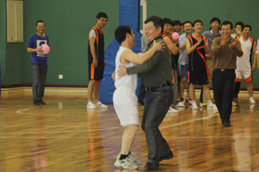 座谈会结束后,各人乘车前往恒概略育馆,运动的第一项内容是公司领导和青年员工配合完成的团队拓展游戏——“齐脚并进”和“心心相印”两项接力角逐。角逐历程中,公司领导和青年员工们热情高涨,目标明确,心往一处想,劲往一处使,充分发挥团队协作精神,争分夺秒完成各项任务,充满汗水的笑脸在灯光下熠熠生辉,加油鼓劲和欢呼祝贺声响成一片。拓展游戏项目结束,各人还进行了篮球友谊赛和羽毛球角逐。