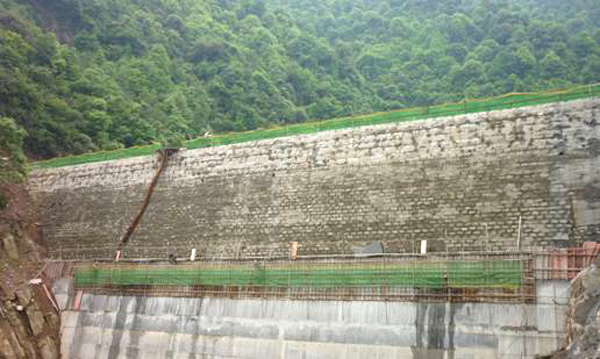 正在施工中的大坝防渗面板