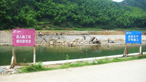 三清山管委会枫林镇防洪工程施工现场宁静警示牌