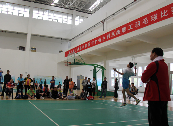 在角逐中,我公司参赛球员本着“友谊、健康、拼搏”的宗旨,充分展示江西水利人积极向上的精神风貌、顽强拼搏的意志品质、友爱相助的团队精神。经过六天猛烈的角逐,我公司羽毛球队夺得团体角逐冠军,参赛球员魏轩获得男子单打亚军的好结果。