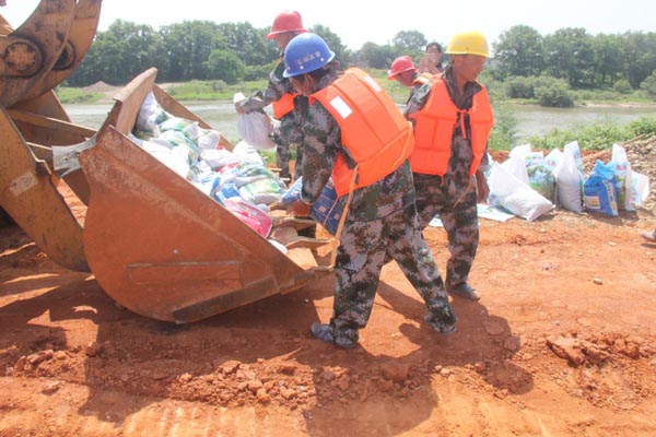 机械倒运防洪物资