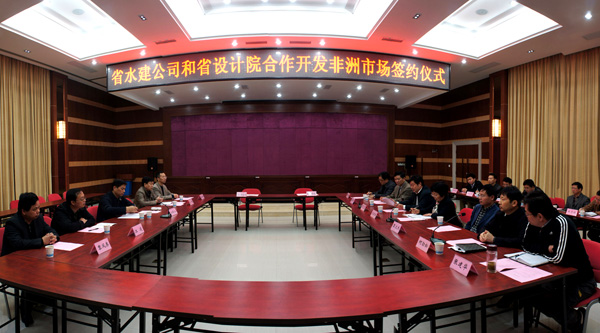 2013Äê11ÔÂ13ÈÕ£¬ÎÒ¹«Ë¾Óë½­Î÷ʡˮÀû¼Æ»®Éè¼ÆÔºÏàÖú¿ª·¢·ÇÖÞÊг¡ôßÁªºÏ½¨Á¢¡°½­Î÷ʡˮÀû¼Æ»®Éè¼ÆÔº°£Èû¶í±ÈÑÇ·ÖÔº¡±Ç©Ô¼ÒÇʽÔÚʡˮԺ¼¯»áÖÐÐľÙÐС£½­Î÷ʡˮÀûÌüµ³Î¯Êé¼Ç¡¢Ìü³¤ËïÏþɽ³öϯǩԼÒÇʽ²¢×÷ÖØÒª½²»°£¬ÎÒ¹«Ë¾¶­Ê³¤¼æ×ܾ­ÀíÍõÔªµ©¡¢Ê¡Ë®ÔºÔº³¤¿×ÀþÀö»®·ÖÖ´Ç£¬²¢´ú±íË«·½Ç©¶©Õ½ÂÔÏàÖúЭÒé¡£