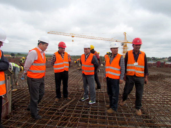 2014年12月1日上午,公司董事长王元旦、副总经理张周平、党委副书记王延军、副总经理黄郑民一行联合体江西晶太公司董事长淦晶、公司肯尼亚效劳处主任贺翔等前往肯尼亚双河项目施工现场进行视察,检查项目进展情况 。
