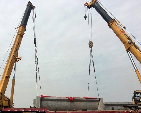 廖坊灌区二期工程PPP项目为国家“十三五”期间172项重洪流利工程之一 ,也是我公司首个“PPP” 项目;总投资12.9亿 ,其中建安投资7.83亿。2018年1月15日上午十时许 ,在业主、监理等参建单位人员的注视下 ,陪同着礼炮的轰鸣 ,下幕塘渡槽顺利完成了首跨槽身的吊装。首跨渡槽的吊装为项目的按期完成打下坚实基础 ,同时也为我司积累了现代化妆配式建筑的施工经验。