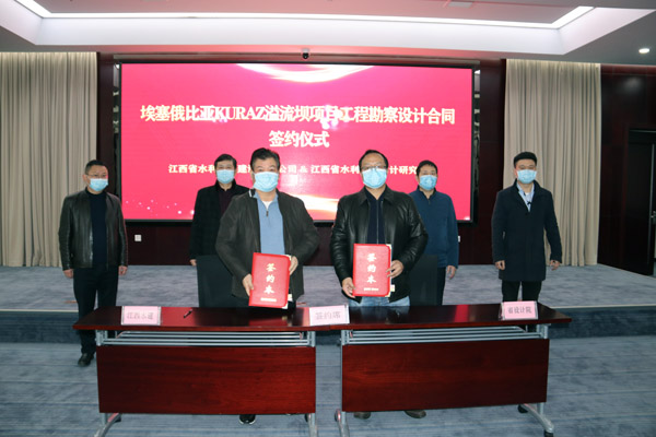 2月28日,我公司与江西省水利计划设计研究院正式签订埃塞俄比亚kuraz溢流坝项目勘察设计条约。省设计院党委书记江凌,副院长、党委委员柯劲松,公司党委书记、董事长王元旦,外洋公司执行董事张周平等领导出席签约仪式。 该条约的签订是双方境外工程项目的再一次强强相助,为项目的顺利推进涤讪了良好的基础。