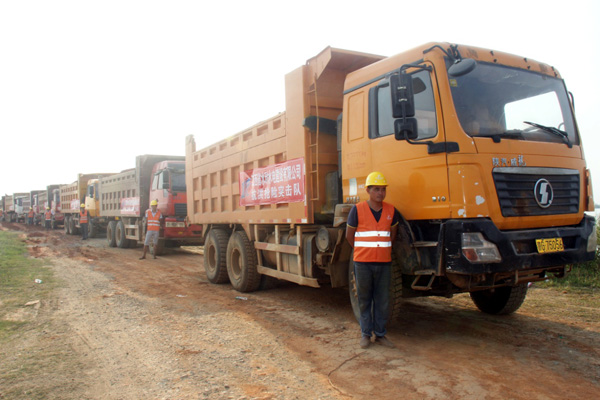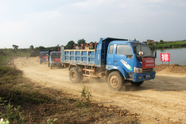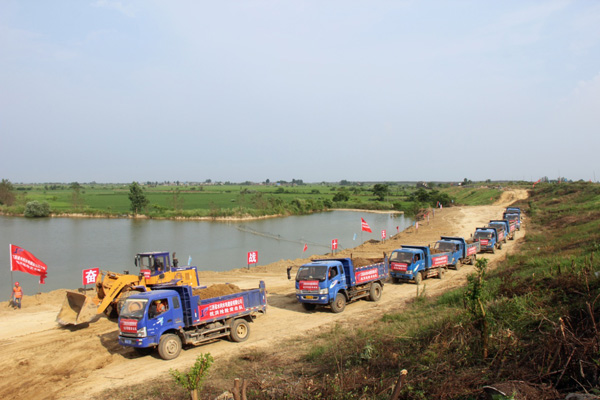 受前期连续强降雨及长江洪水倒灌、顶托影响,九江市河湖水位长时间处于超警戒水位状态,导致该地区防汛形势十分严峻,圩堤险情随时可能爆发,特别是堤脚处有池塘的圩堤更易泛起险情。为确保庐山市沙湖山圩堤恒久稳固,我司在接到该市防汛指挥部的除险加固任务后,立即派遣抗洪抢险突击队前往现场进行抢险,以稳固圩堤,确保圩堤内乡村黎民及农田宁静。经过现场勘查,突击队决定沿着圩堤脚有池塘的地段填出一条长约1公里、宽20米的压浸平台进行加固处理。抢险计划确定后,公司迅速组织了3台挖掘机、2台装载机、36台自卸汽车等机械设备及40多名作业人员顶着炎炎烈日进行施工,力求在10天内完成抢险任务,确保圩堤宁静。